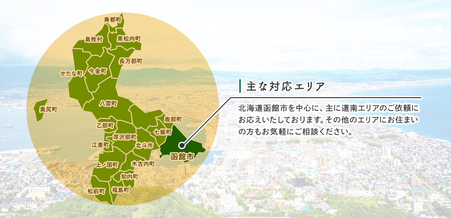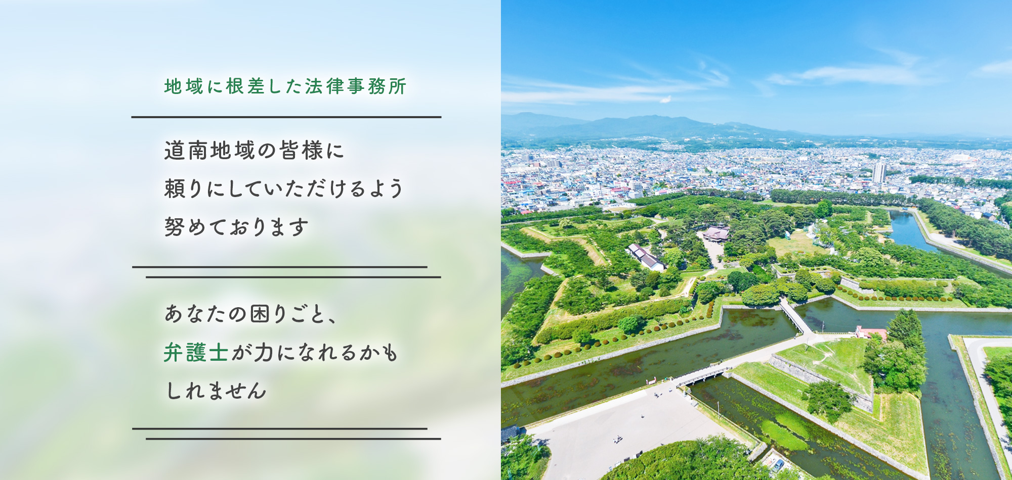 弊所へのお問い合わせやご依頼は、お電話またはメールフォームより承っております。北海道函館市を拠点に、道南エリアからのご依頼を中心として、個人・法人問わず様々なお悩みにお応えいたします。交通事故に関するお悩みをお抱えの方や、訴訟を起こされて困っている、不当解雇されてしまった、遺産分割で揉めている、などのトラブル解決、ご不安の解消まで、まずはご相談ください。